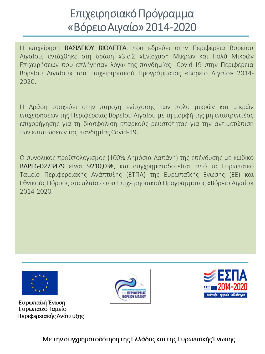 Επιχειρησιακό Πρόγραμμα «Βόρειο Αιγαίο» 2014-2020